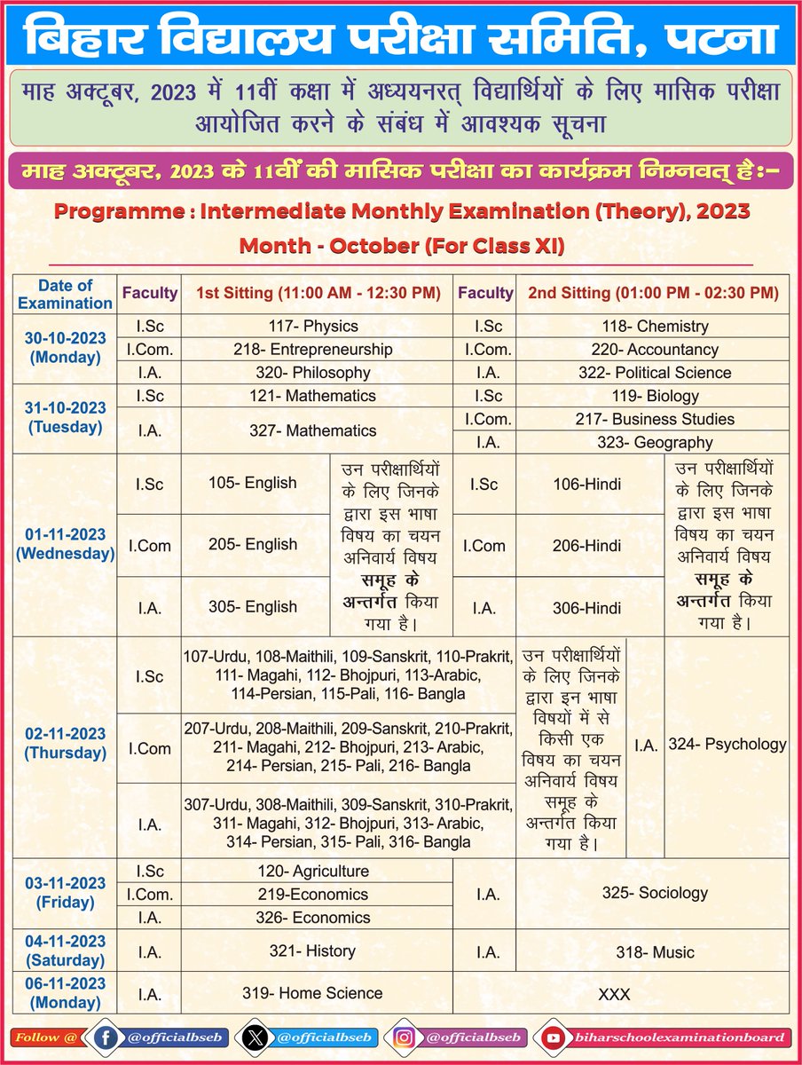 Short Information: Bihar School Examination Board (BSEB) has Recently Issued the Online exam date for Bihar BSEB Class 11th Exam Date 2023. All the candidates who had Reading in class 11th for BSEB Inter Exam 2025 can download their exam date Routing 2023 and download the Exam Date, the direct link to download the Exam Date is given below.