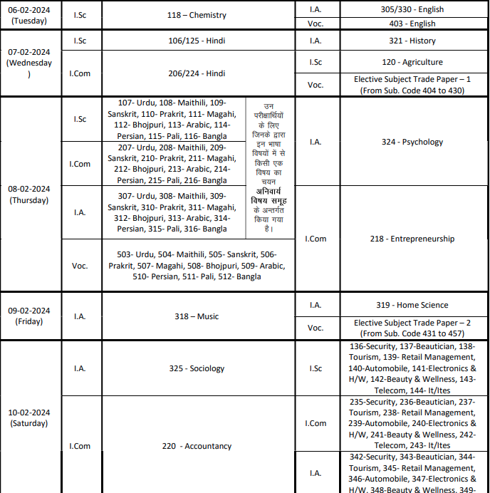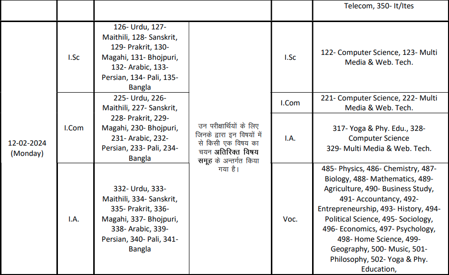 BSEB 12th exam schedule | |||||||||