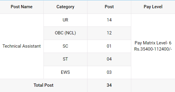 CSIR Technical Assistant Vacancy Details Total Post : 34