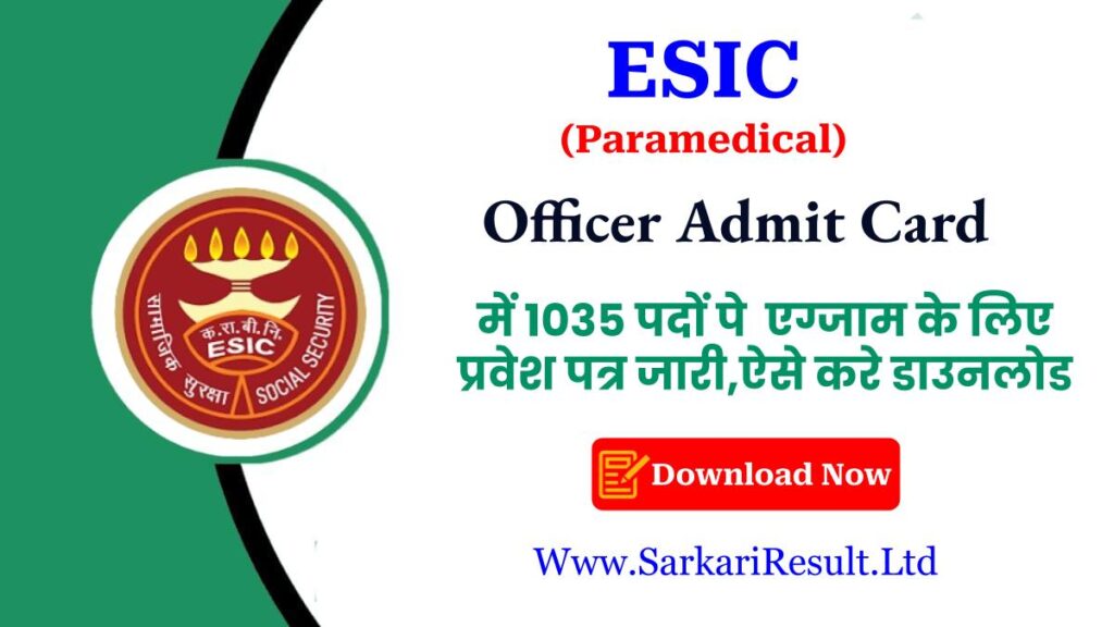 Short Information: Ministry Of Labour & Employment ESIC Has Recently Released To The Online Admit Card For ESIC Paramedical Recruitment Online Form 2023. Candidates Who Are Eligible For ESIC Paramedical Vacancy Then Download Their ESIC Paramedical Vacancy Sarkari Result Notification And Download The Notice, And Apply The Direct Link The Apply Online Is Given Below.