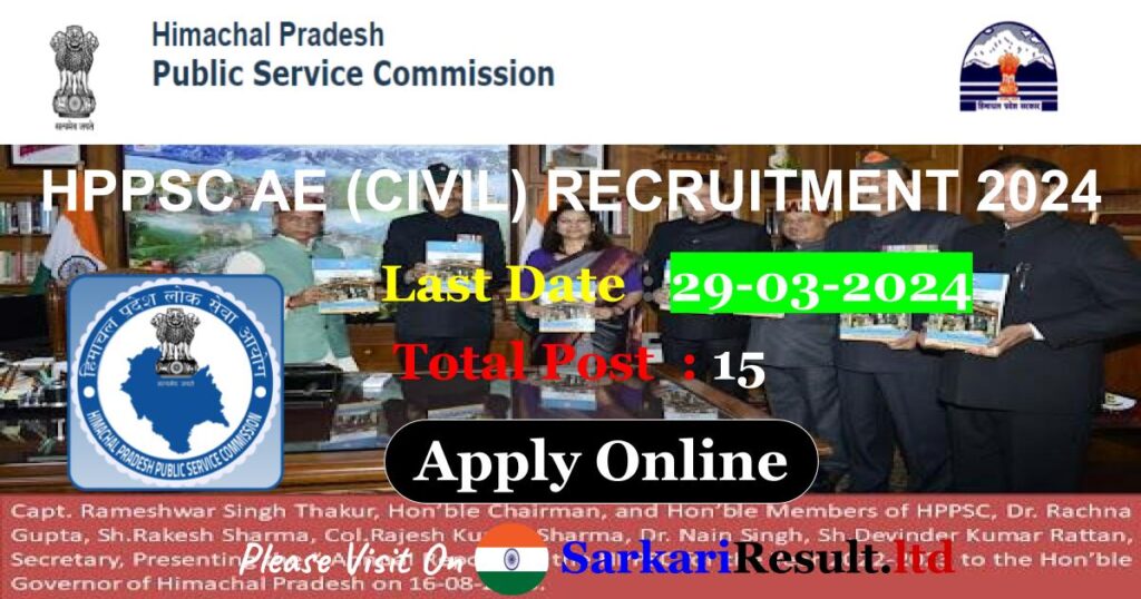 Short Information:Himachal Pradesh Public Service Commision has recently released the recruitment notice for the post of 15 posts under (HPPSC AE Recruitment Online Form 2024) . If you are eligible for the post of the notification information from here and Apply, read complete information carefully before applying.