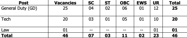 | Indian Coast Guard Assistant Commandant Vacancy Details Total Post : 46 | |||||||||
