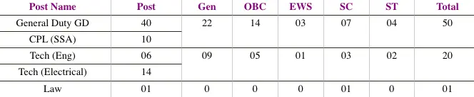 | Coast Guard Assistant Vacancy Details Total Post : 71 | |||||||||