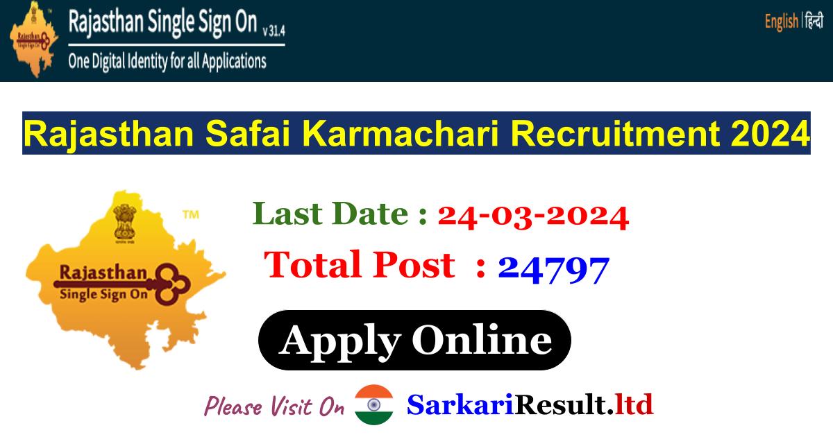 Short Information: Rajasthan Government has recently released the recruitment notice for the post of 24797 posts under (Rajasthan Safai Karmachari Recruitment Online Form 2024) . If you are eligible for the post of the notification information from here and Apply, read complete information carefully before applying.