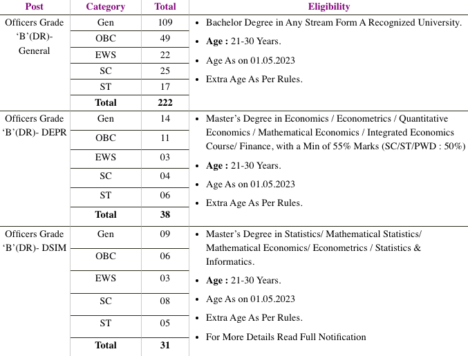 RBI Vacancy Details Total Post : 291