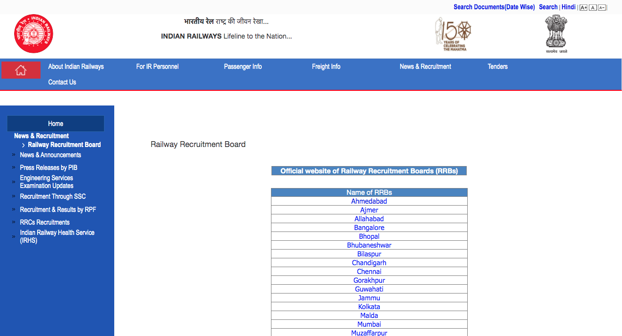- किसी भी रेलवे भर्ती बोर्ड (आरआरबी) की वेबसाइट खोलें।