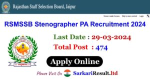 - Short Information: Rajasthan Government has recently released the recruitment notice for the post 474 posts under (Stenographer, PA Recruitment Online Form 2024) . If you are eligible for the post of the notification information from here and Apply, read complete information carefully before applying.