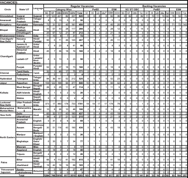 sbi clerk Vacancy Details Total Post : 8283 | |||||||||