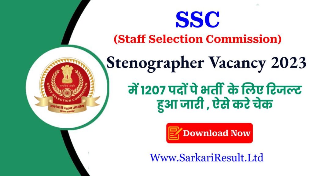 SSC Stenographer Result 2023 – घोषित हुआ एसएससी स्टेनोग्राफर भर्ती परीक्षा का रिजल्ट , इस डायरेक्ट लिंक से करे चेक
